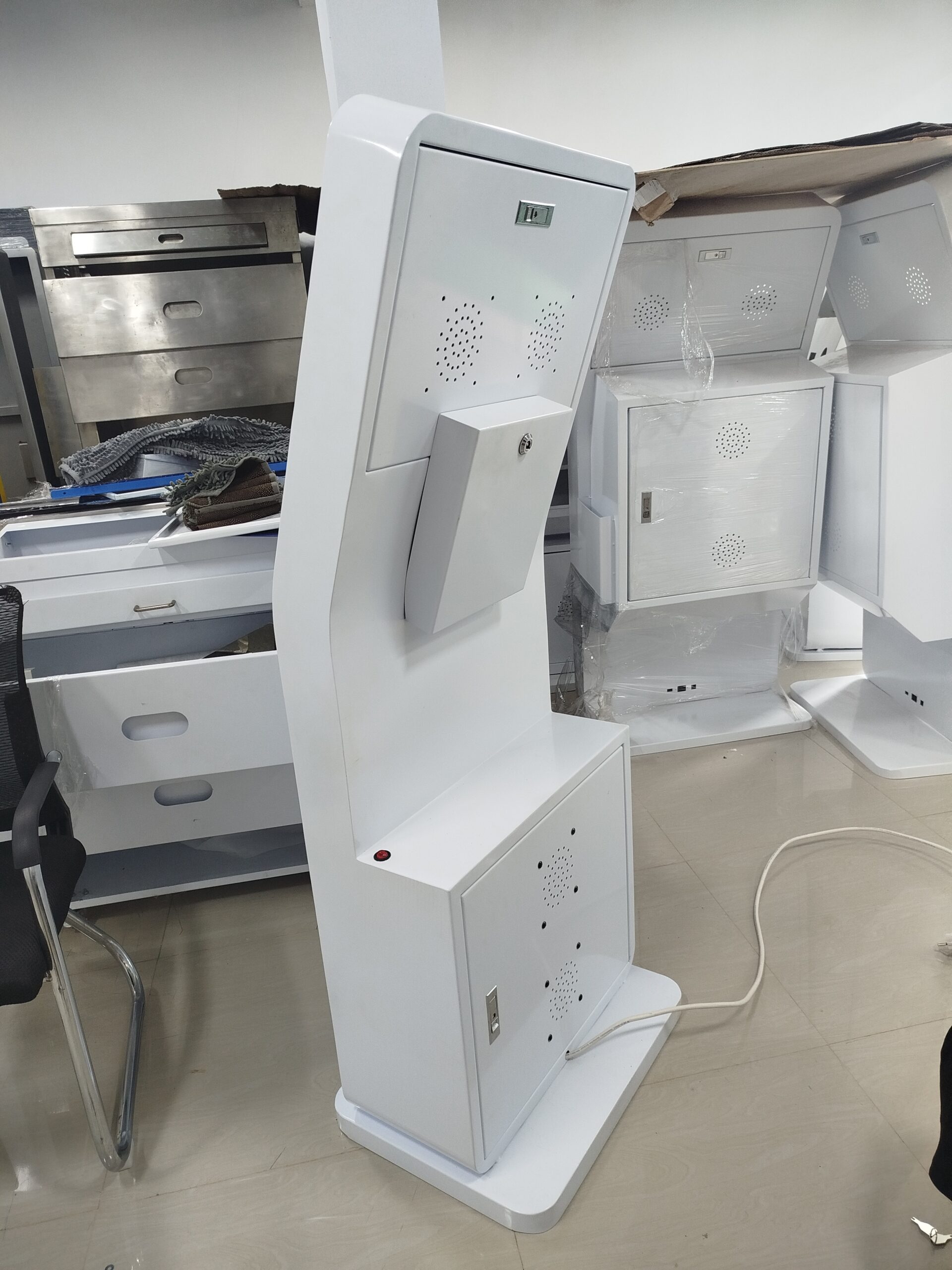 - Cover Kiosk, bahan plat steel tebal Krakatau steel (Design custom bentuk), Finshing Powder Coating elegan Anti karat dan debu, kualitas industri.